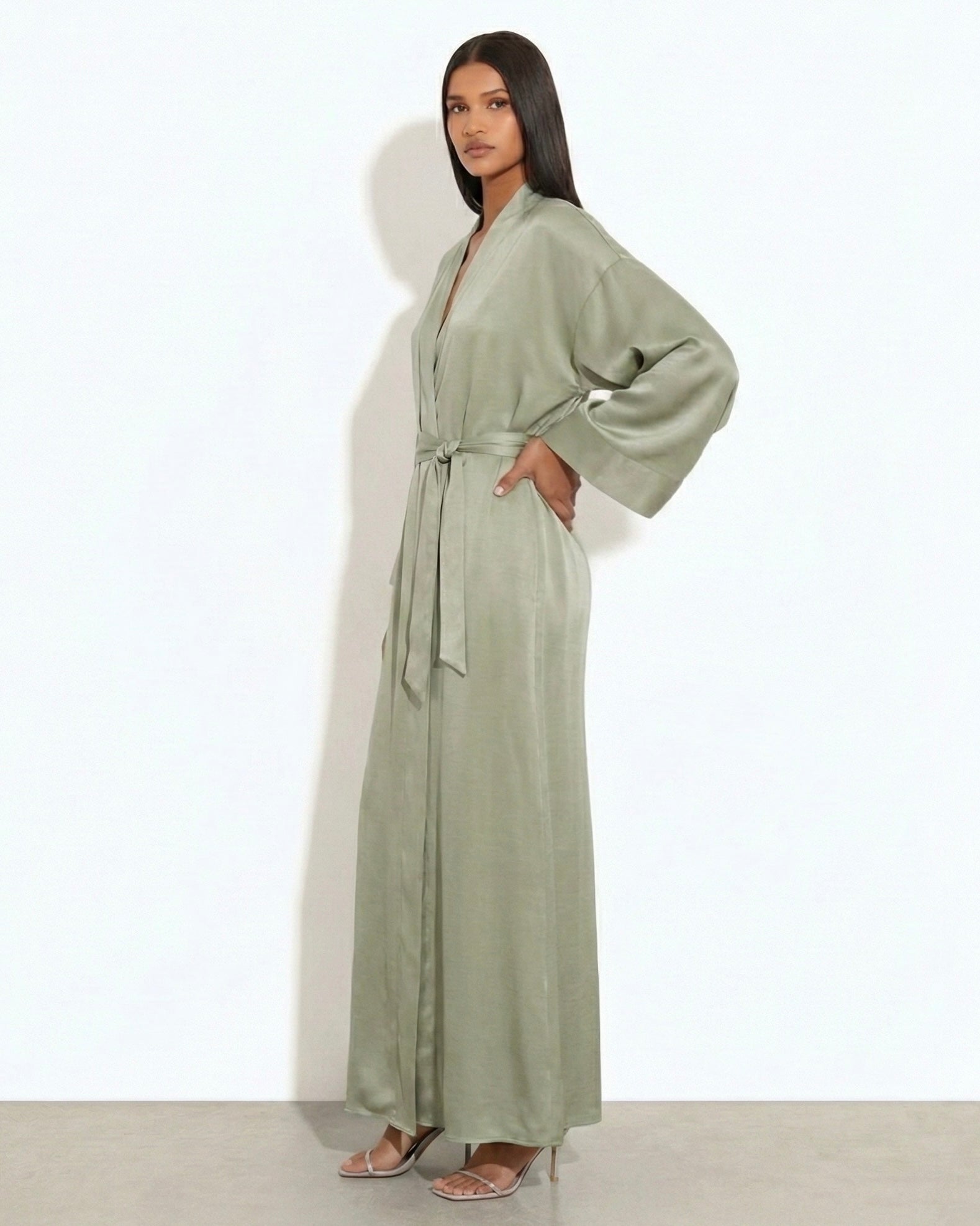 The Sapphire kimono is an ode to simplicity that whispers luxury. Crafted from high-quality viscose satin, it catches the light with every movement — smooth, soft, and impossibly elegant. With its clean silhouette, flowing drape, and detachable belt, Sapphire can be worn both as loungewear and as a statement layering piece.