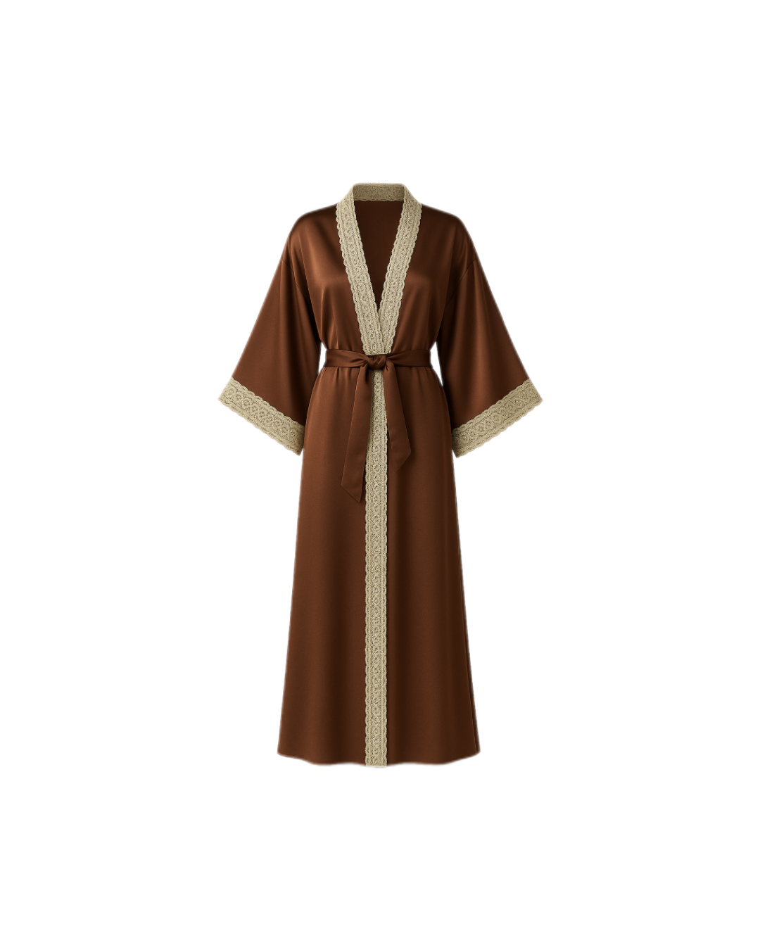 Вишукана гармонія елегантності та комфорту. Сукня-кімоно Roksolana — це поєднання ніжності натуральної шовкової віскози та витончених мереживних деталей, що створюють відчуття абсолютної розкоші. Природній блиск сатину у тандемі з кремовим мереживом підкреслює природну жіночність і додає образу особливого шарму.